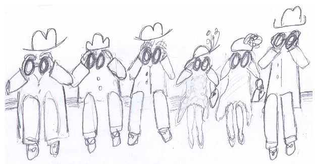 "Was Syd there?" "Yes. They can't start without Syd." "And Meg?" "Yes." "What was she wearing?" "Dunno." "And Les and Elva?" "Yes. They were there." "And what did they have to say?" "Nothing." "So what did you talk about?" "We didn't. I've told you a 1000 times before: we go to the Races to watch the races." Hmmmmph! |