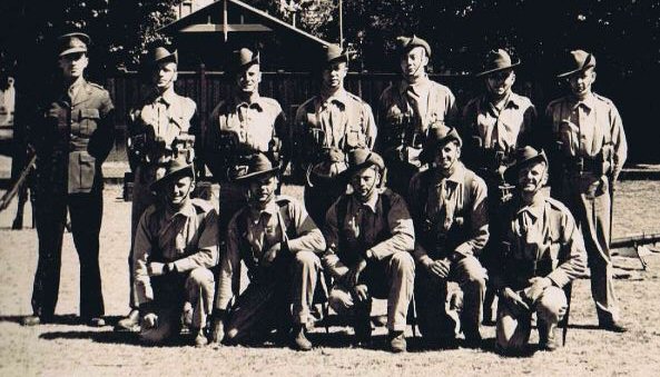 The Tel-Aviv advert is a hoot. Mr Feigenbaum evidently had no idea who Ned Kelly was, but was determined to fleece the Diggers in the Holy Land during the Australian occupation there. Bobby once held a random (but lucky!) audience enthralled at the Canberra War Museum when he described the real action (at the Tobruk diarama). Syd is front row, far left in the magnificent posed shot; and the postcard of Syd shows what a handsome man he was. The Digger in the jungle is none other than Kevin "Choco" Sullivan, who is often mentioned in the these pages. |