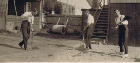 ![]() Doing the washing. Just as at Downs Street, the Sorrento property had a laundry. But this one was outside. Len chops wood for the firebox which heated the water in the copper. |